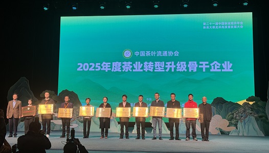 近日,第二十一届中国茶业经济年会在浙江绍兴新昌县圆满落幕。在本次年会发布各项调查中,我省许多县(市、区)、单位和个人榜上有名: 2025年度优秀会员: 浙江省茶叶产业协会 安吉龙王山茶叶有限公司 2025年度优秀企业家会员: 毛立民 浙江茶博士生物科技有限公司 李晓军 杭州艺福堂茶业有限公司 戴青朋 仙居县茶叶实业有限公司 2025“国茶人物·制茶大师”: 石碧鹏 萃茗茶业(新昌)有限公司 唐永俊 浙江茶博士生物科技有限公司 李 锋 安吉白茶集团有限公司 林秉卓 浙江天圣皇茗茶业有限公司 2025“国茶人物·制茶能手”: 王振东 百年龙灿(宁波)茶文化有限公司 2025年度茶业重点县域: 松阳县、新昌县、安吉县、武义县、磐安县、诸暨市、嵊州市、开化县、淳安县、建德市、宁海县、泰顺县、天台县、上虞区。 2025年年度“三茶”统筹发展县域: 新昌县、松阳县 2025年度茶业高质量发展县域: 安吉县 2025年度茶业重点企业: 浙江省茶叶集团股份有限公司 杭州艺福堂茶业有限公司 杭州西湖龙井茶叶有限公司 华茗园国际集团有限公司 浙江省武义茶业有限公司 浙江九舟茶业有限公司 浙江诚茂控股集团有限公司 杭州卢正浩茶叶有限公司 仙居县茶叶实业有限公司 2025年度茶业综合影响力骨干企业: 华茗园国际集团有限公司 2025年度茶业转型升级骨干企业: 浙江省茶叶集团股份有限公司 2025年度茶业配套服务骨干企业: 浙江甲骨文超级码科技股份有限公司 杭州湖畔居茶楼有限责任公司