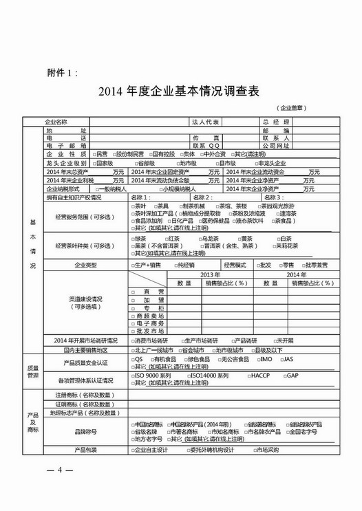 转发中茶协:关于开展“2015中国茶叶行业百强企业调查工作”的通知